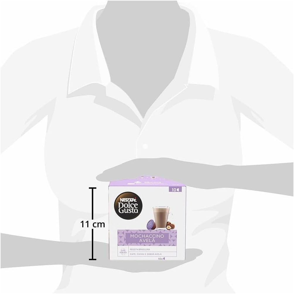 - MOCHACCINO AVELÃ: Um verdadeiro deleite! Você só precisa de uma xícara do Mochaccino Avelã para saborear um sabor que é puro conforto! É a magia do aroma de café e o toque de sabor avelã que vai fazer você se sentir abraçado! São 10 cápsulas para aproveitar e saborear.