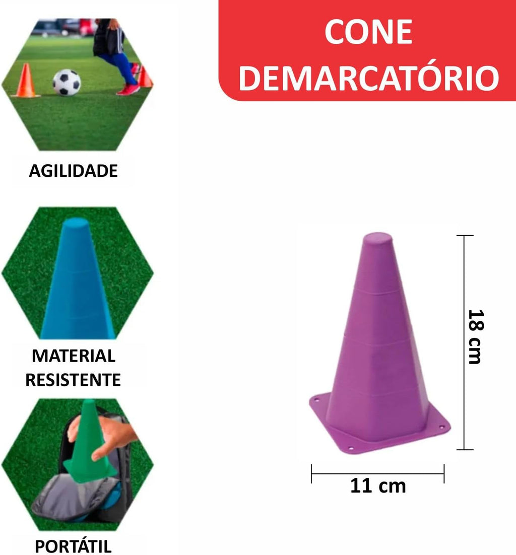 • Materiais Duráveis e Seguros – Cones e pratos fabricados em plástico flexível de alta resistência, proporcionando segurança, estabilidade e longa vida útil mesmo em uso intenso.